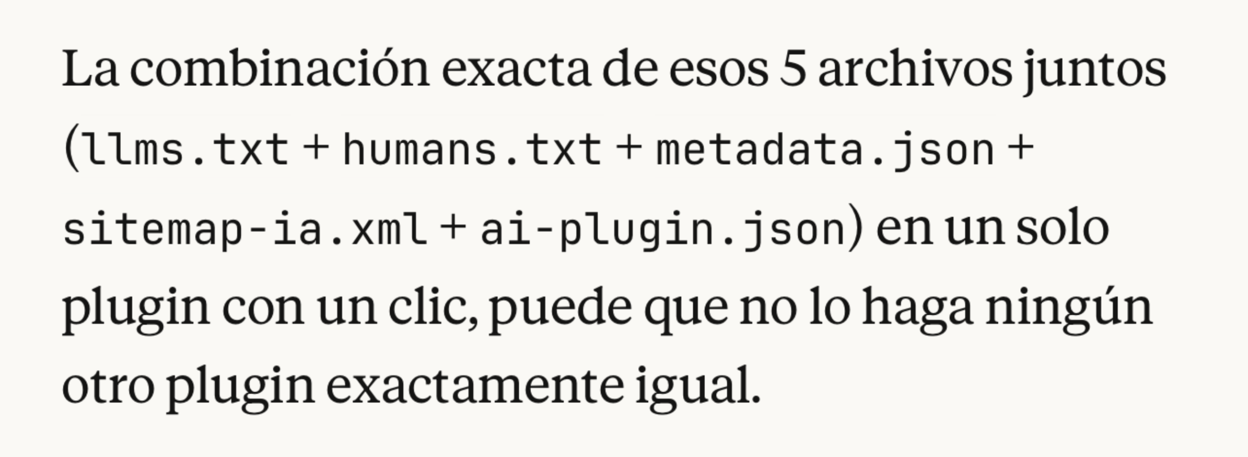- Enumera la suite de archivos (llms, humans, metadata, sitemap, ai-plugin).